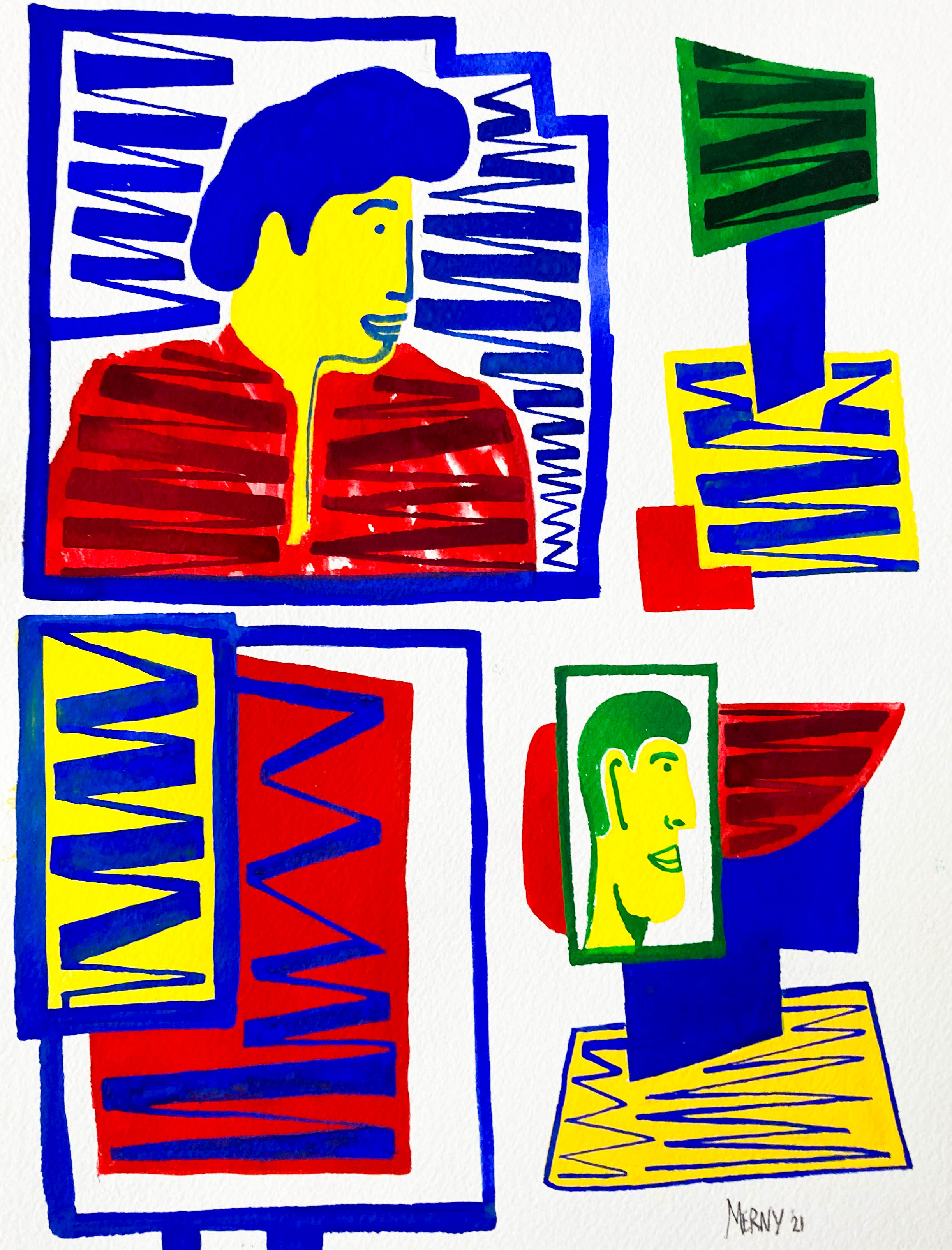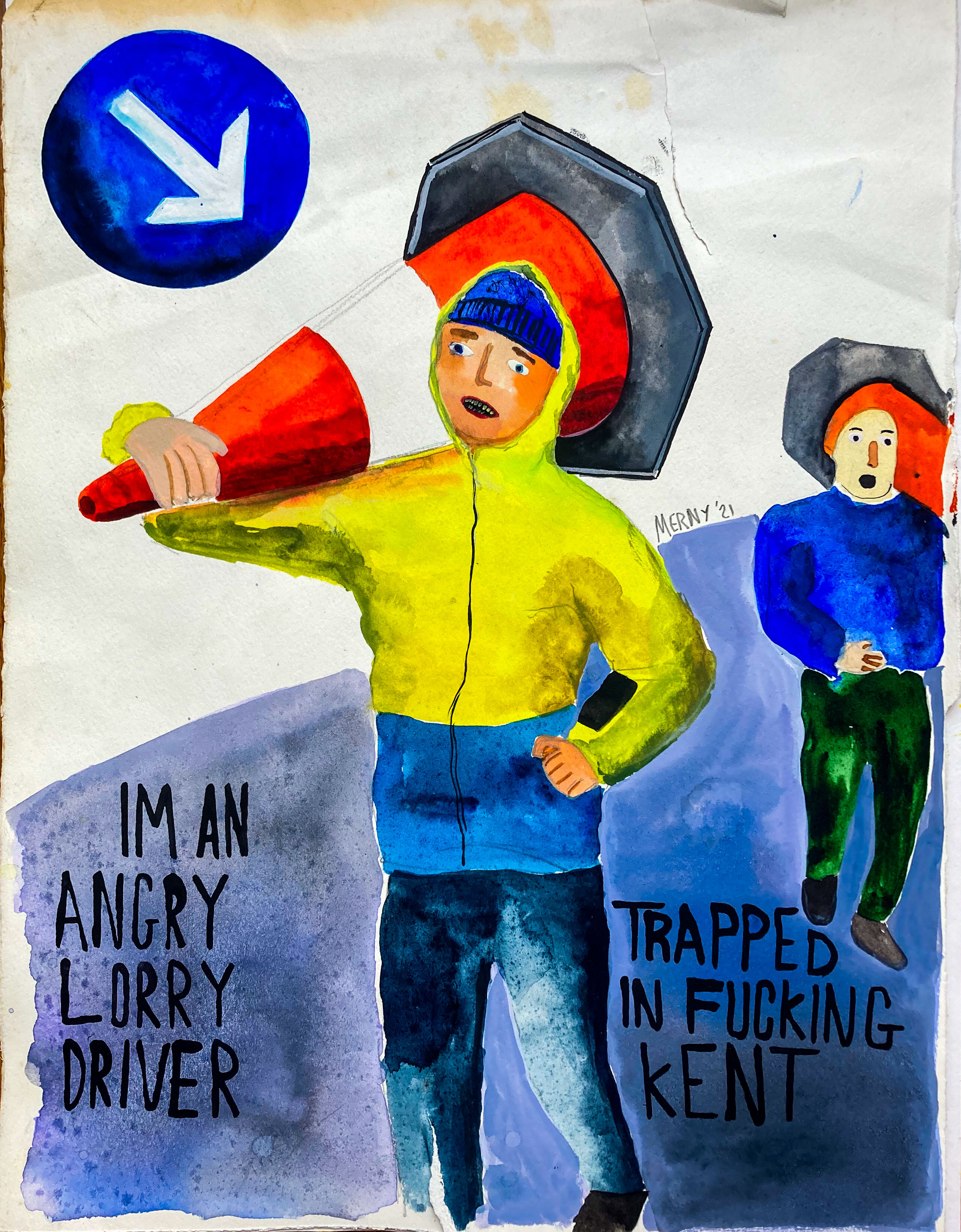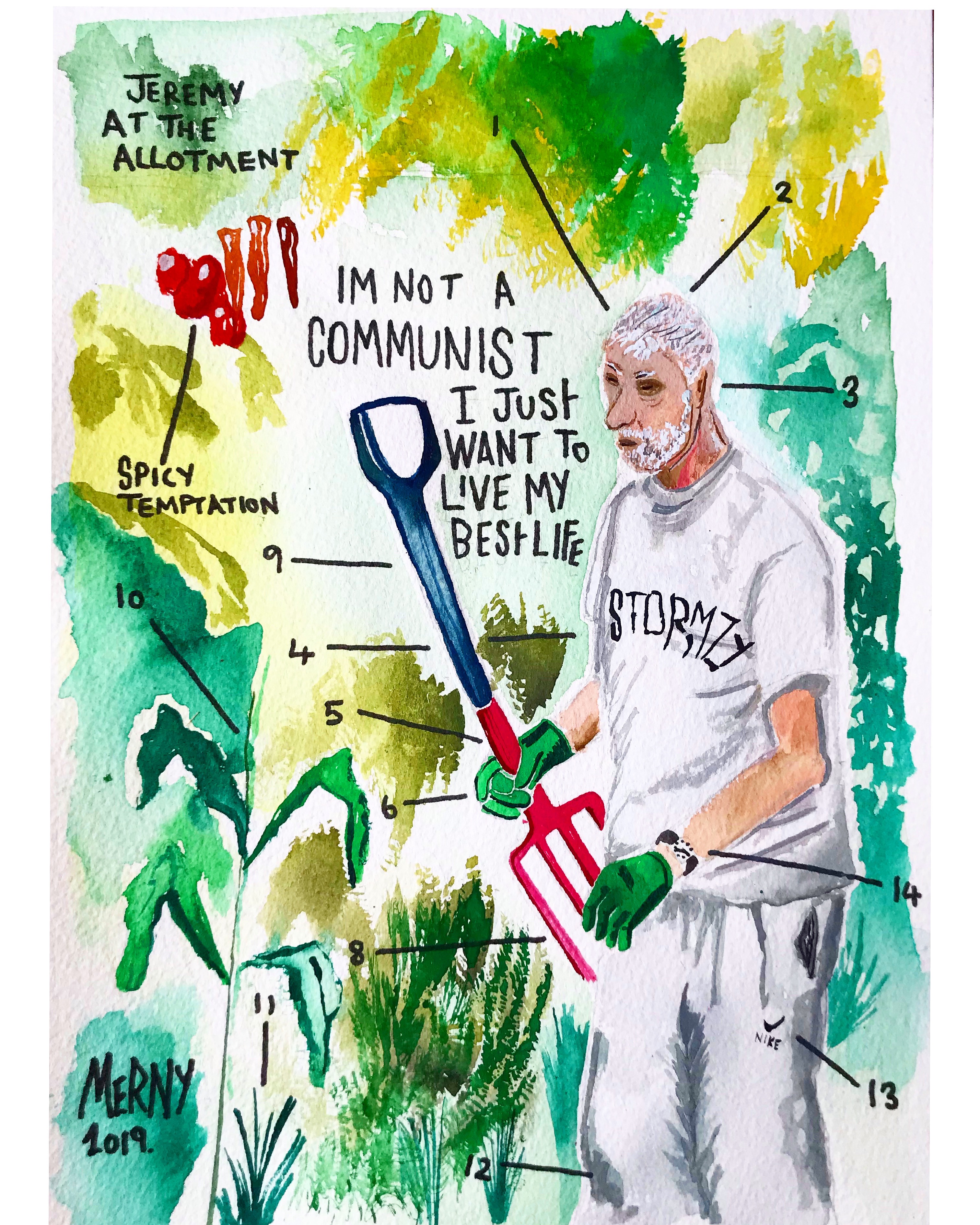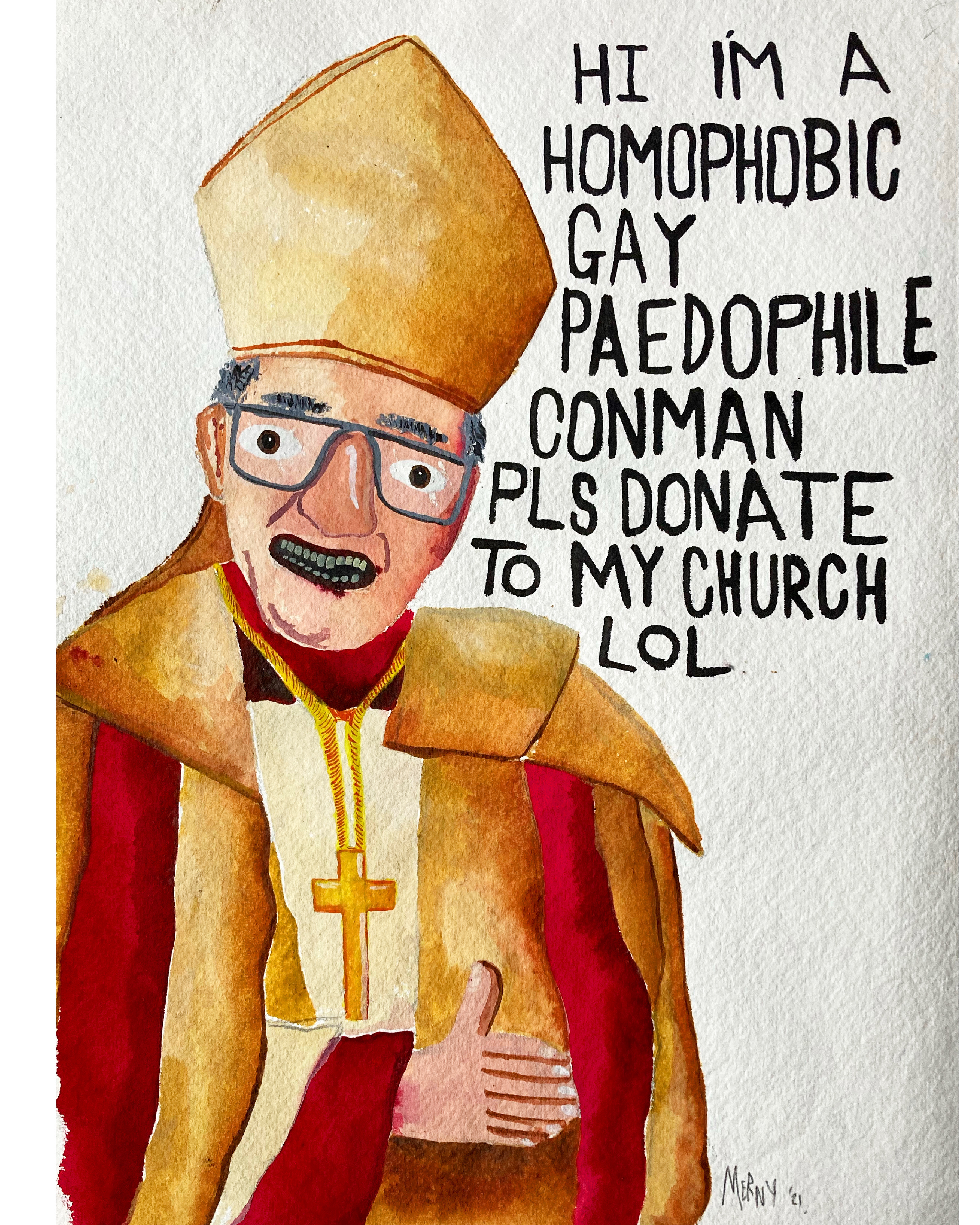 I’ve been painting watercolours on bits of paper. Here is a selection of recent Mernywernz watercolours for you to enjoy. Sorted into current recurring topics.