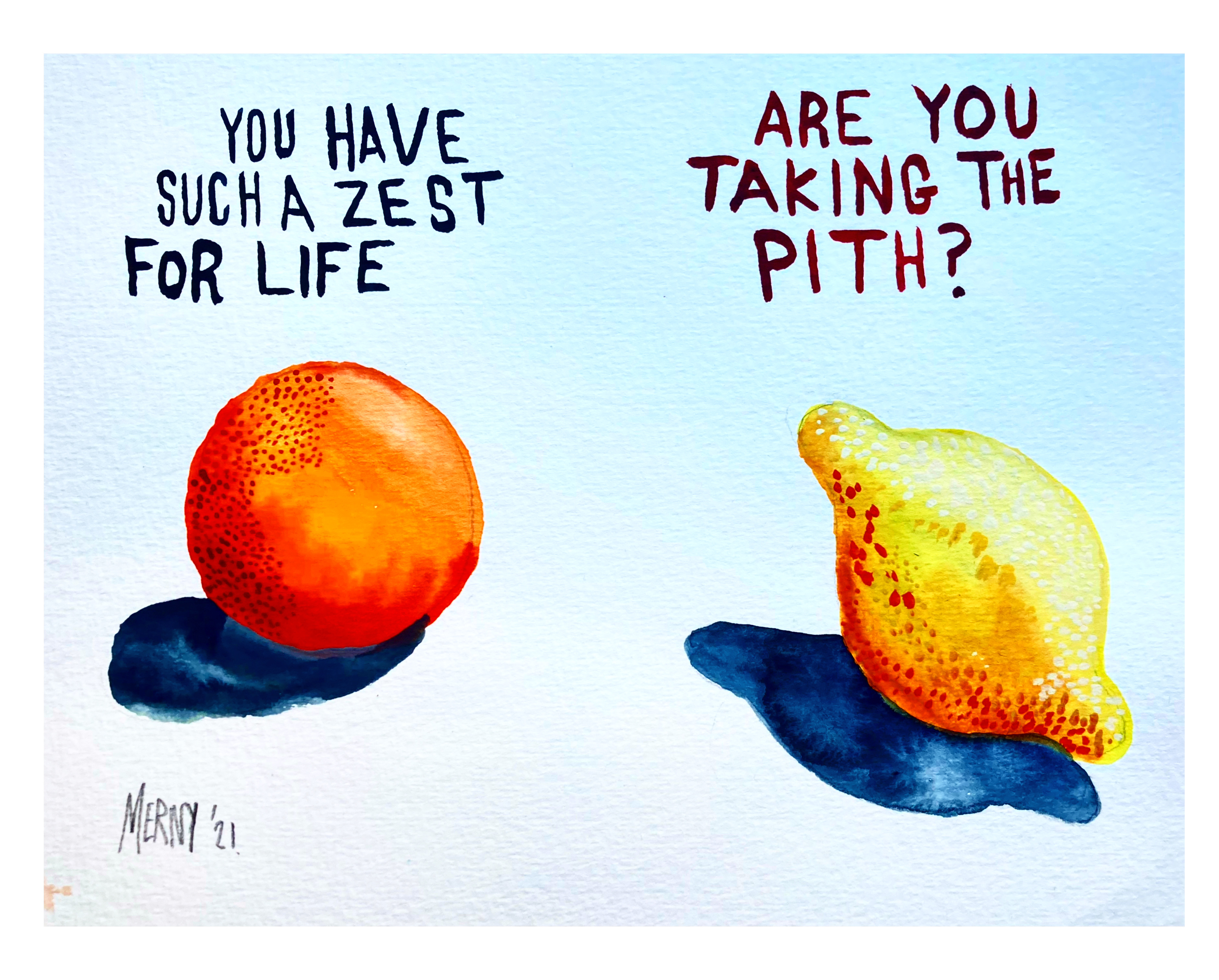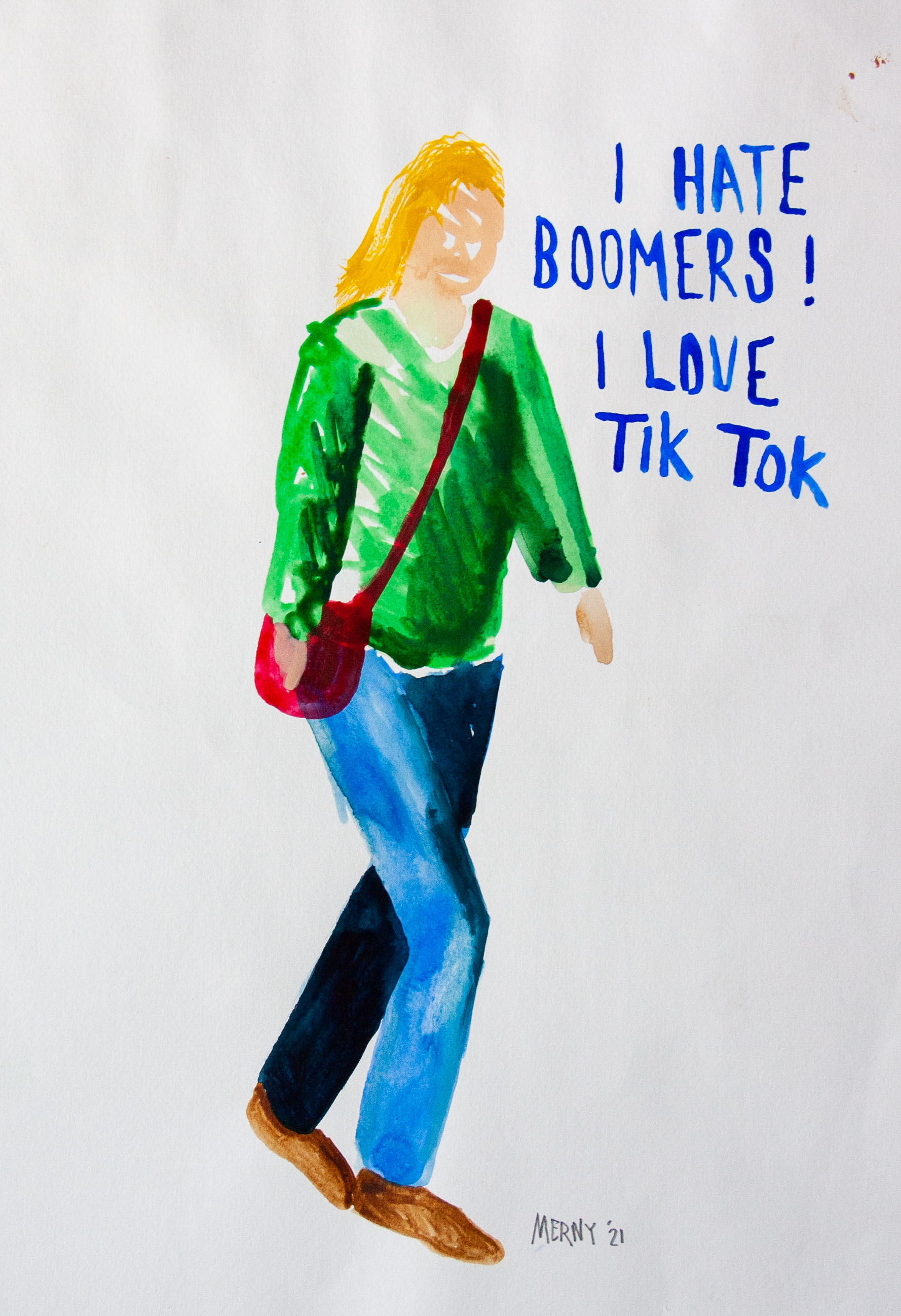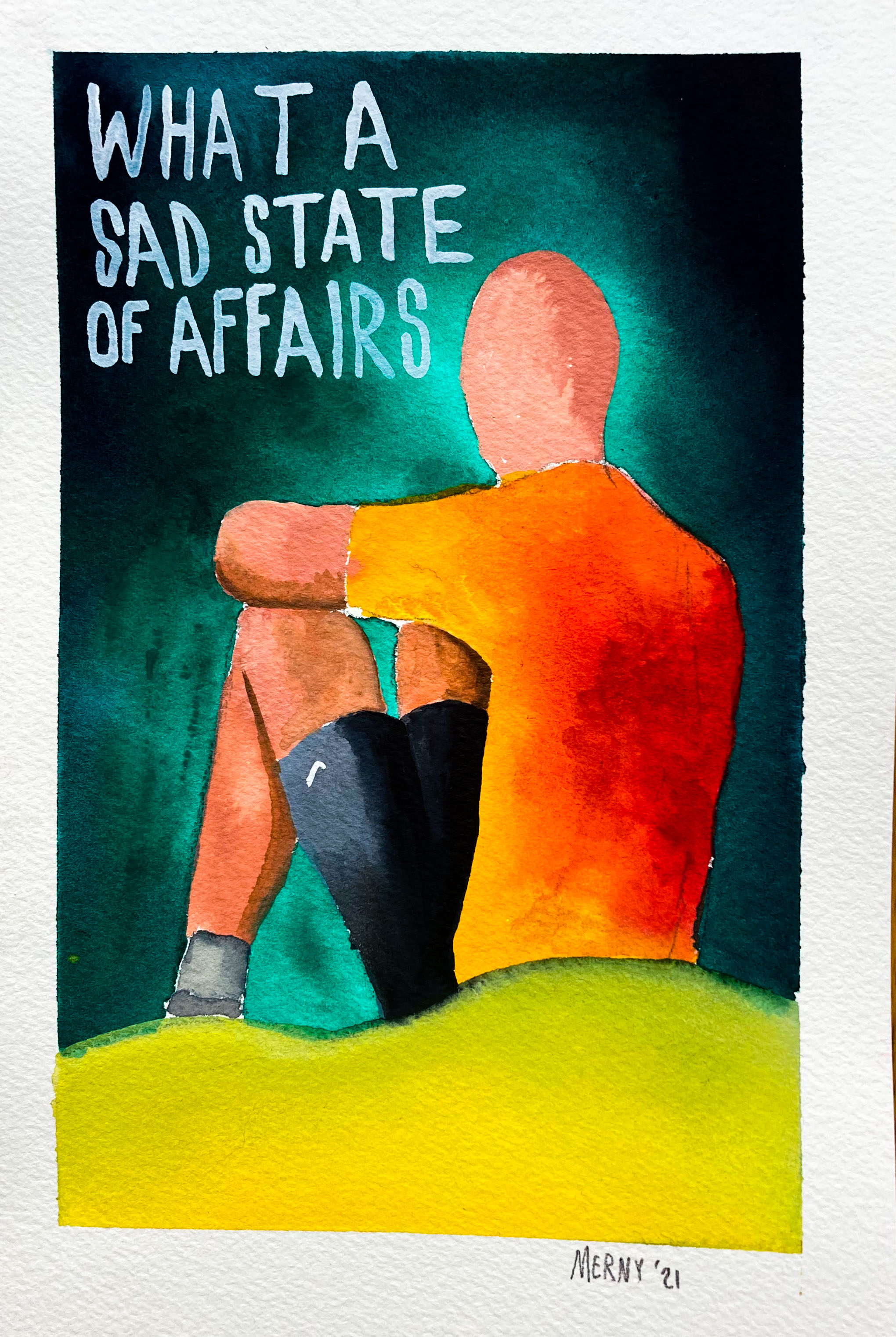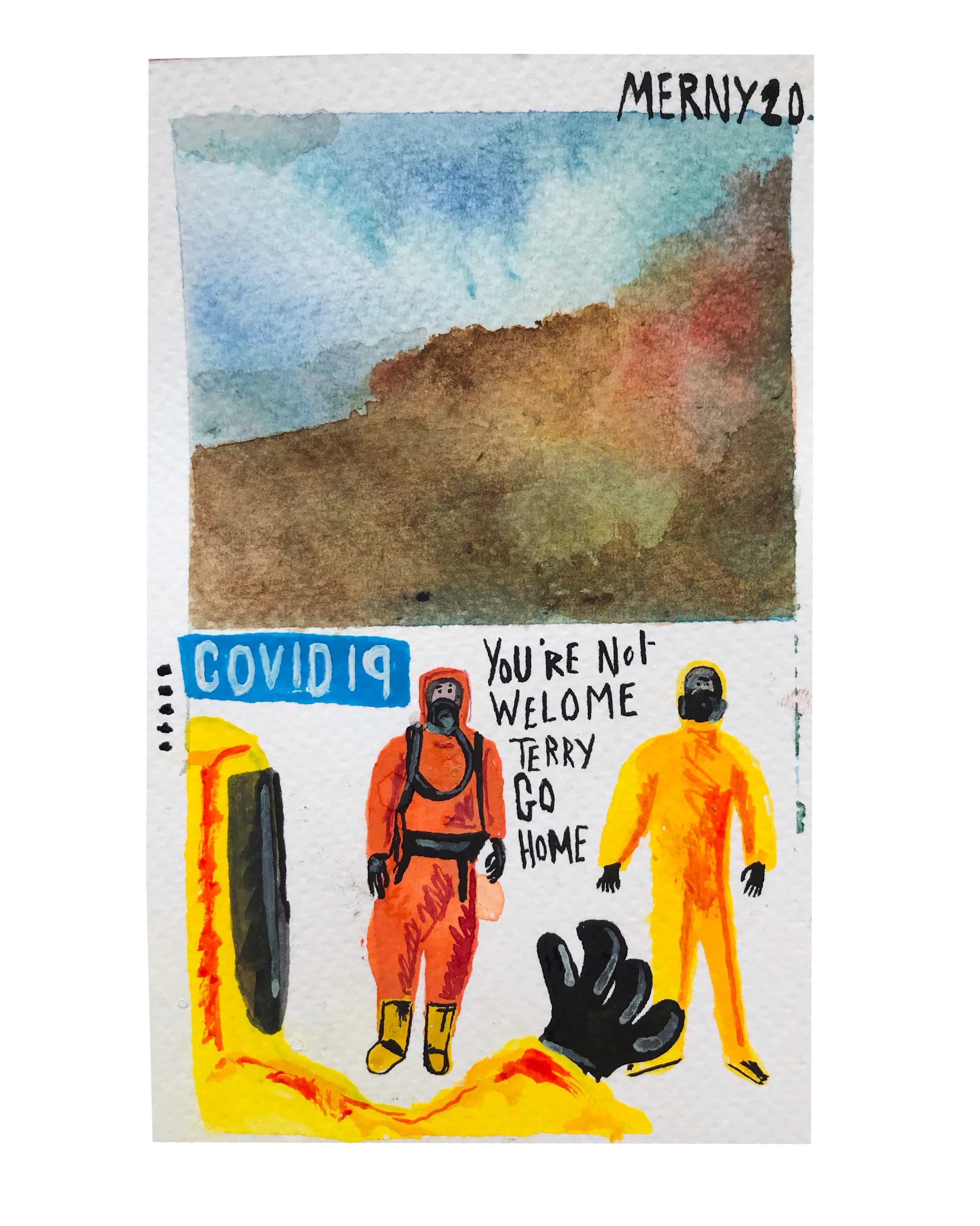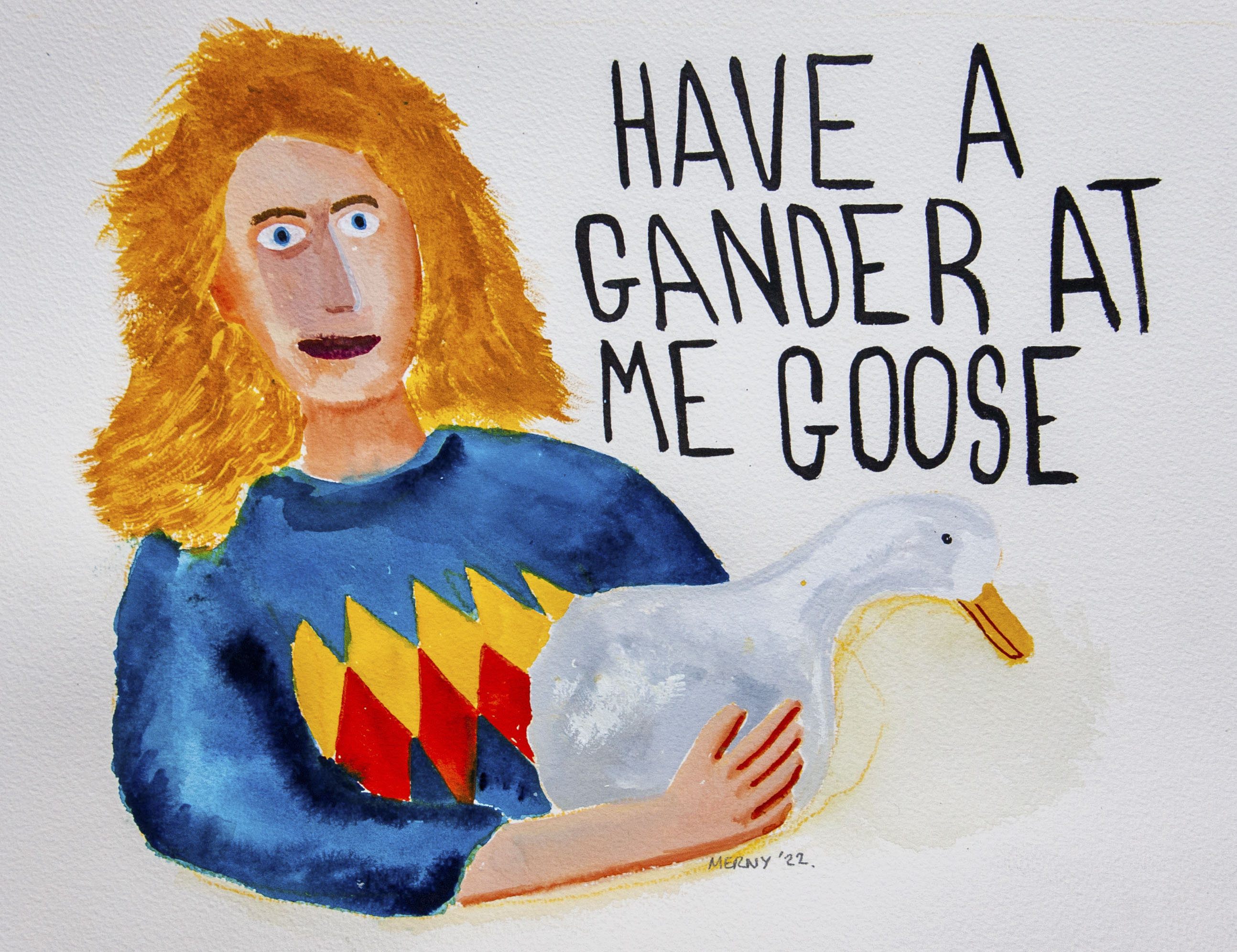 I’ve been painting watercolours on bits of paper. Here is a selection of recent Mernywernz watercolours for you to enjoy. Sorted into current recurring topics.
